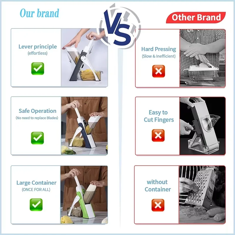Safer Slicer: A safe slicer for any chef. Sharp hidden blade slices quickly and evenly, easy to set up and clean up, no need to wear gloves or change blades to use, it is definitely an upgraded replacement for your daily cooking.